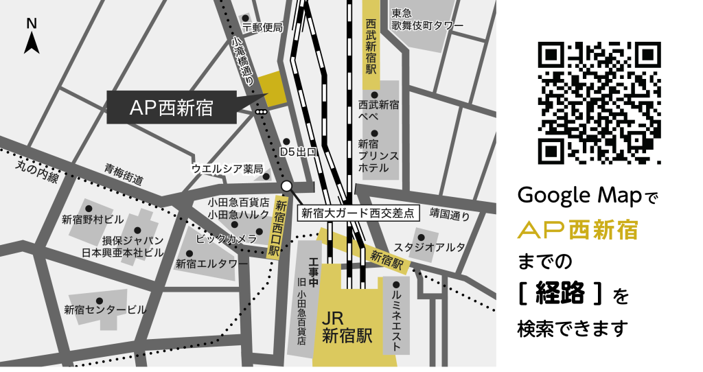 JR東日本、京王線、小田急線、東京メトロ丸の内線、都営新宿線「新宿駅」から徒歩5分。